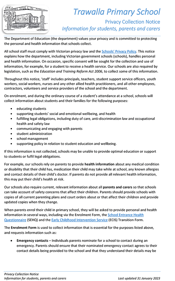 This policy explains how Victorian government schools collect and manage personal and health information.